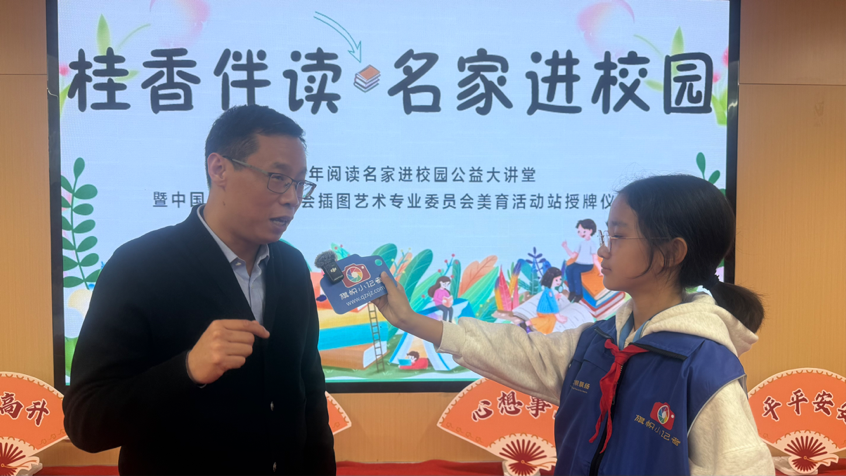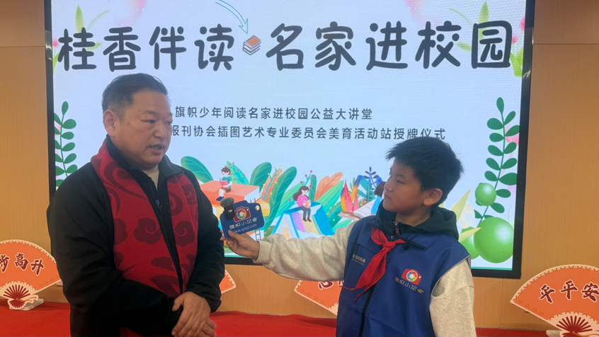 桂香伴读·名家进校园——旗帜少年阅读名家进校园公益大讲堂暨中国语文报刊协会插图艺术专业委员会美育活动站授牌仪式不仅是一个活动结束,更是孩子们打开手中的书本,也是打开世界的窗;你们笔下的色彩,是表达心意的灯。