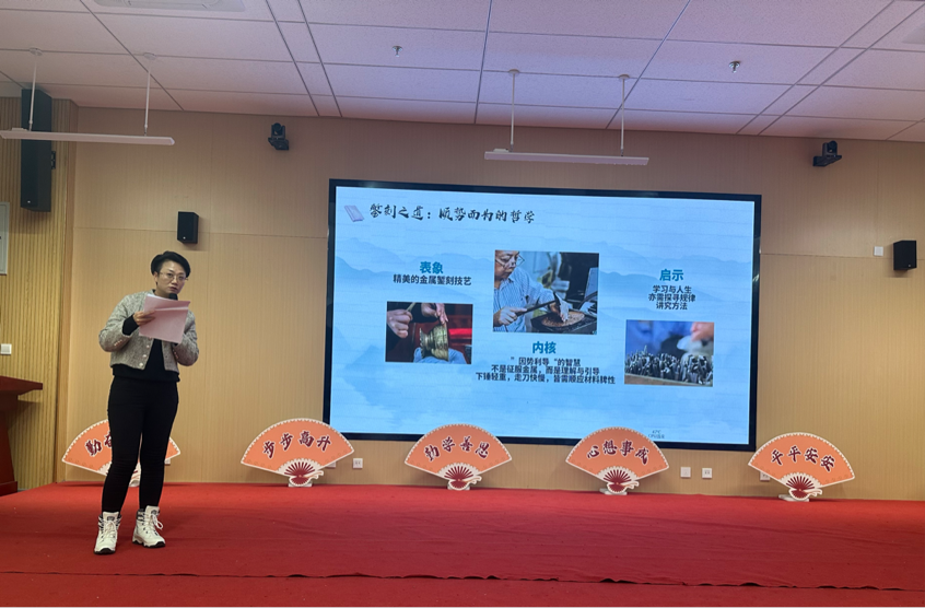 北京工艺美术出版社、北京工艺美术学会理事杨玲艳:当桂香漫进长丰小学的校门,当书页翻动的声音与孩子们的目光相遇,今天这场“阅读与美育”的相聚,便有了最动人的底色。作为一名长期深耕美术评论、出版策划,且始终在“非遗百科”里挖掘传统文化之美的从业者,能走进雄安、走进这所充满书韵的校园,我深感荣幸。在此,也谨向美育活动站的落地表示热烈祝贺,向为孩子们搭建这片“读美相融”天地的每一位同仁致以敬意!在我看来,“阅读”从来不是文字的独角戏,而“美术”恰是让文字活起来的最佳搭档——这与今天美育活动站的初心不谋而合。作为“非遗百科”的主讲人,我更期待在这里看到“阅读+美术+非遗”的奇妙碰撞。雄安这片土地,本身就藏着太多可读、可画的文化宝藏:白洋淀的芦苇画、雄县的黑陶、安新的剪纸……这些非遗技艺,既是家乡的“活历史”,也是最好的美术素材。未来,或许我们可以带着孩子读一篇雄安的民间故事,再用剪纸剪出故事里的场景;或许我们可以读一段非遗传承人的故事,再用画笔勾勒他们手上的技艺——当阅读的文字转化为可触可感的美术作品,当非遗的温度融入孩子的创作,“美育”便有了扎根家乡的深度,“阅读”也有了连接传统的厚度。