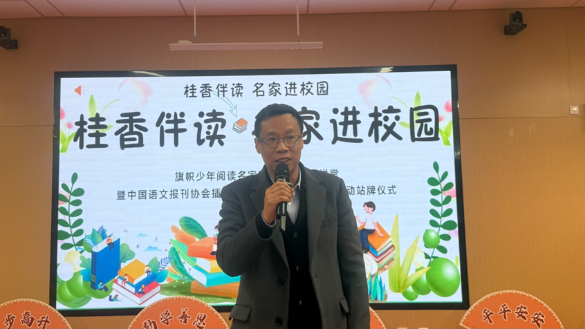 中国教育部语文现代化学会理事、中国语文报刊协会插图艺术专业委员会理事长刘振平:今天,我们齐聚雄安长丰小学,共同见证“桂香伴读·名家进校园”公益大讲堂启幕,也迎来中国语文报刊协会插图艺术专业委员会美育活动站的落地——这既是阅读与美育的“双向赋能”,更是我们以语文之力滋养雄安少年成长的重要起点。在此,我谨代表专委会,向长丰小学全体师生致以热烈祝贺,向支持本次活动的各位同仁致以诚挚感谢!语文教育的真谛,在于让孩子“在文字里见天地,在感知中悟美好”。
