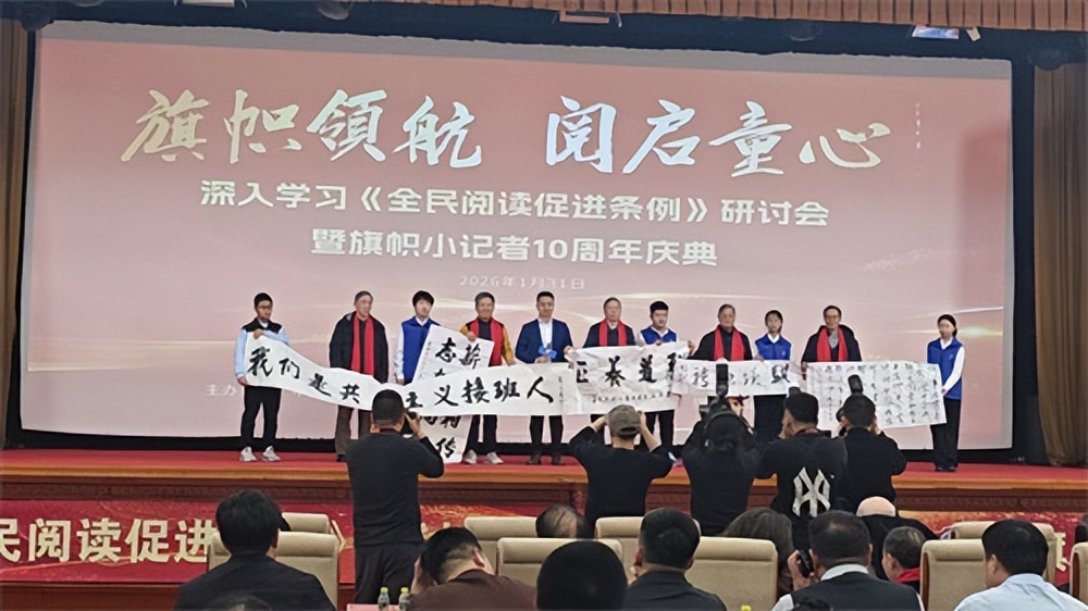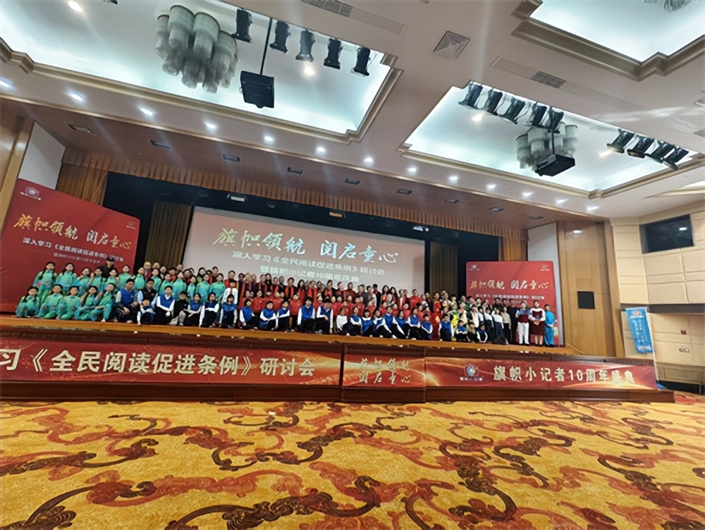 会场内,灯光璀璨,座无虚席。来自各地的旗帜小记者们带着青涩却坚定的眼神,汇聚成一片青春的海洋。望着“旗帜小记者十周年庆典”的醒目横幅,我不禁想起四年来的点点滴滴:第一次拿起话筒采访的紧张与忐忑,第一次撰写稿件被认可的欣喜与自豪,第一次参与实践活动的新奇与收获……而此刻,所有的成长与沉淀,都在这庄严的会场中找到了最耀眼的注脚。